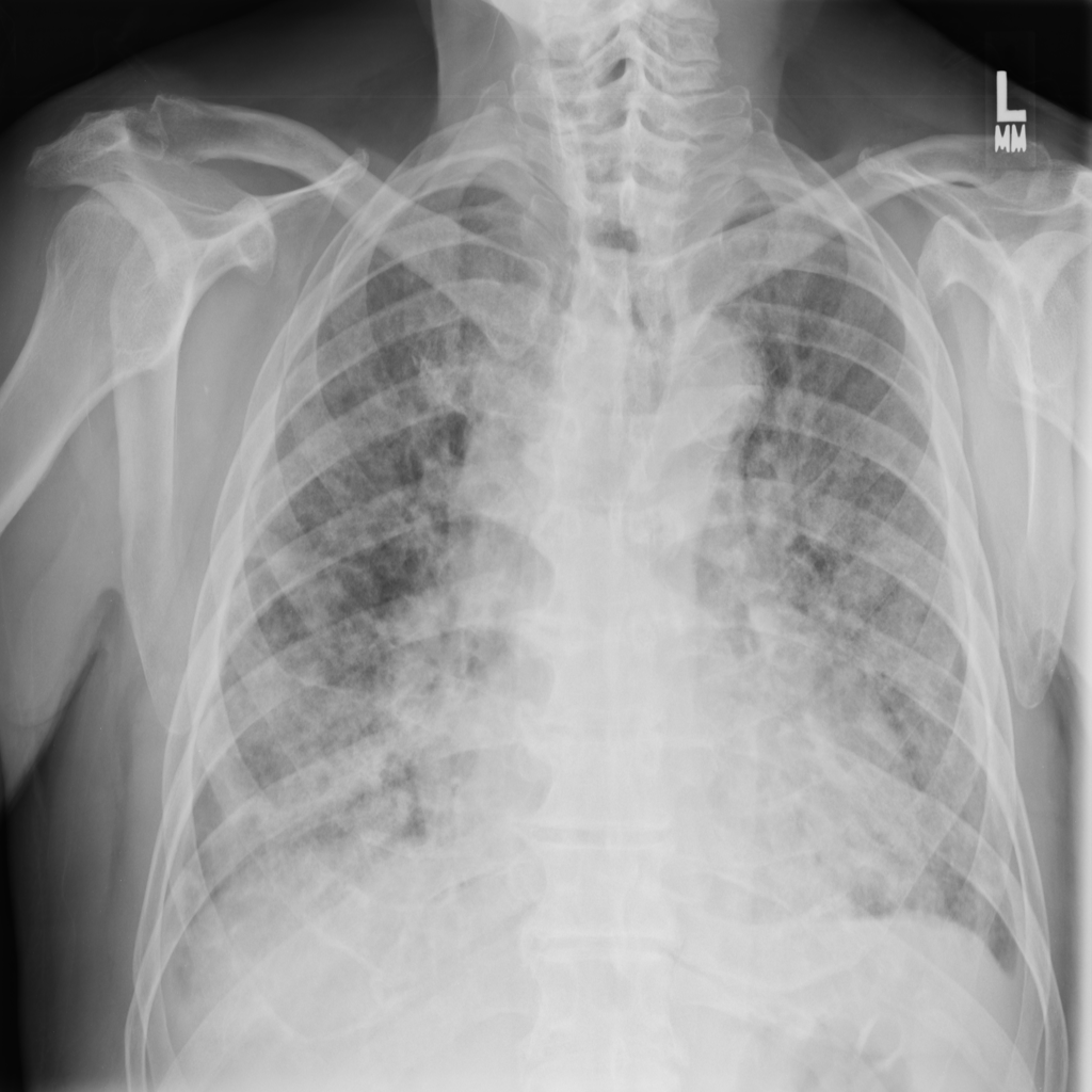 Pneumonia is an infection of the lung tissue, often caused by bacteria, viruses, or less commonly fungi. On chest X-ray it can appear as focal or patchy air-space opacity, though imaging alone does not always prove the cause.