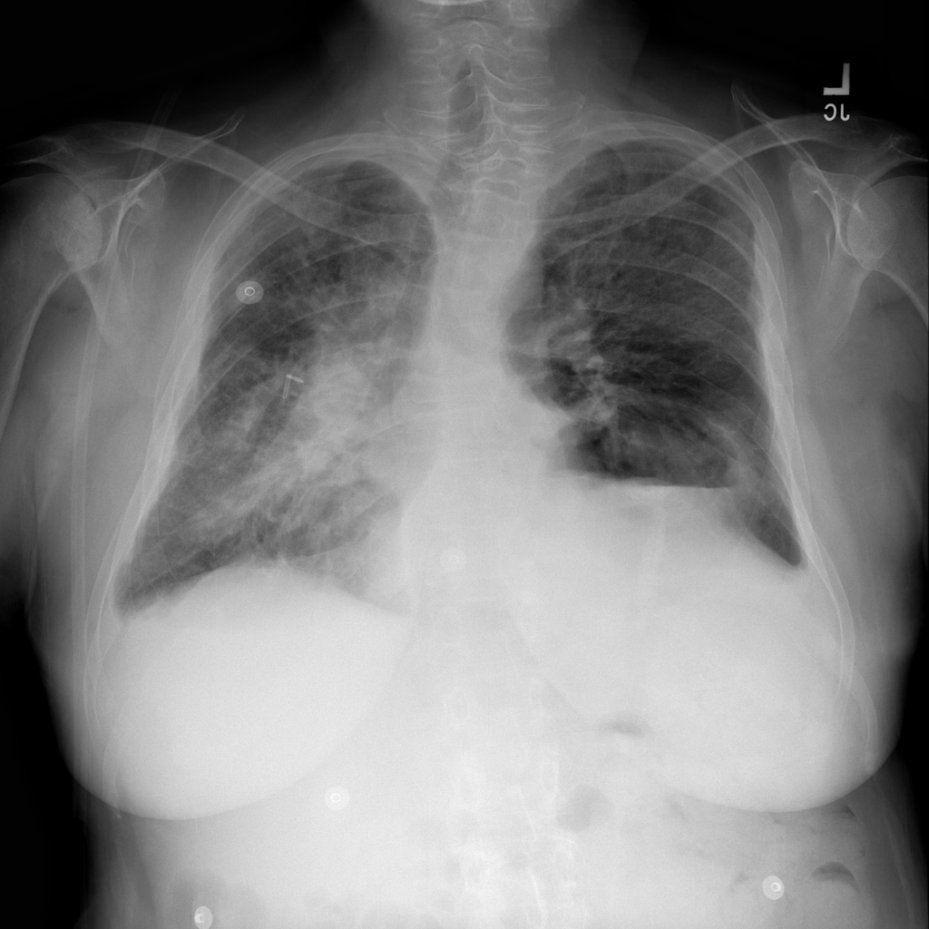 Pneumonia is an infection of the lung tissue, often caused by bacteria, viruses, or less commonly fungi. On chest X-ray it can appear as focal or patchy air-space opacity, though imaging alone does not always prove the cause.