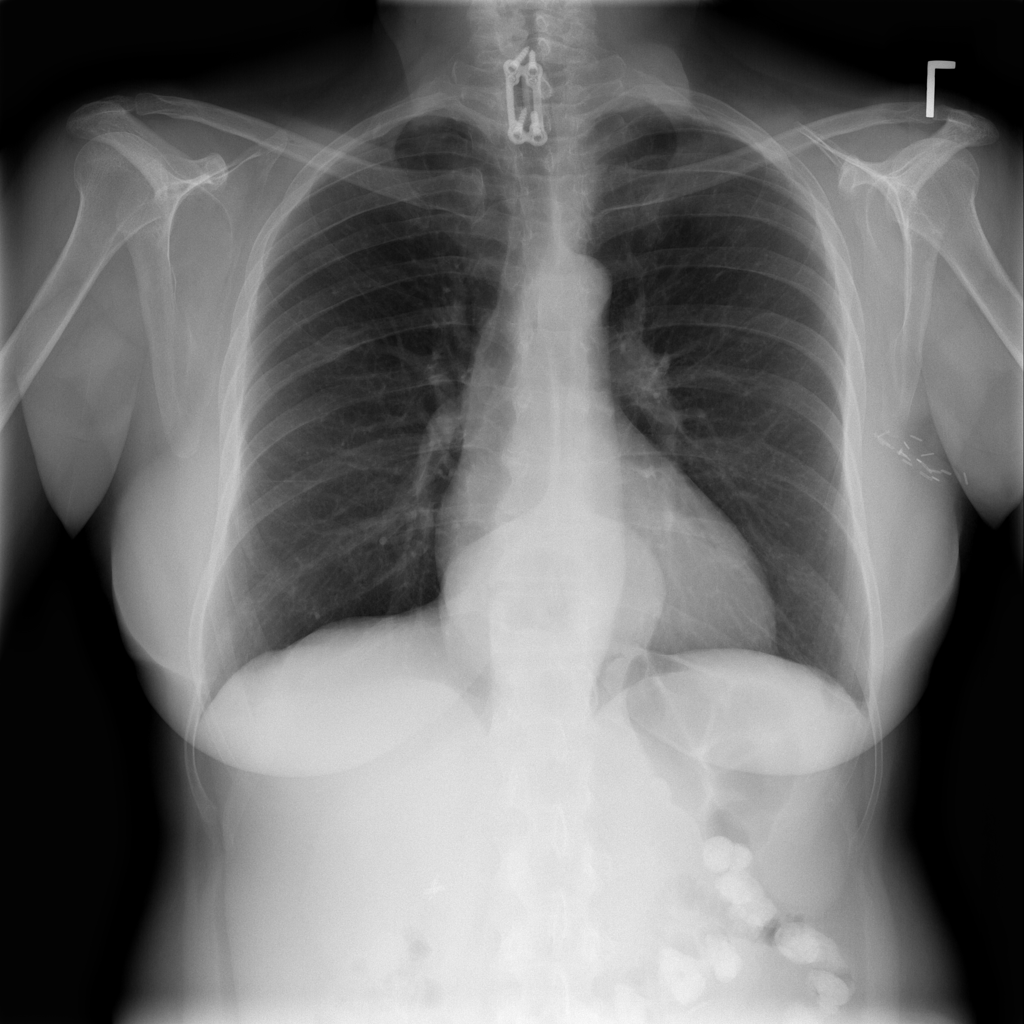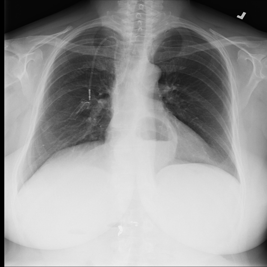 Support devices on chest X-ray include lines, tubes, and implanted hardware whose position may affect safety and management.