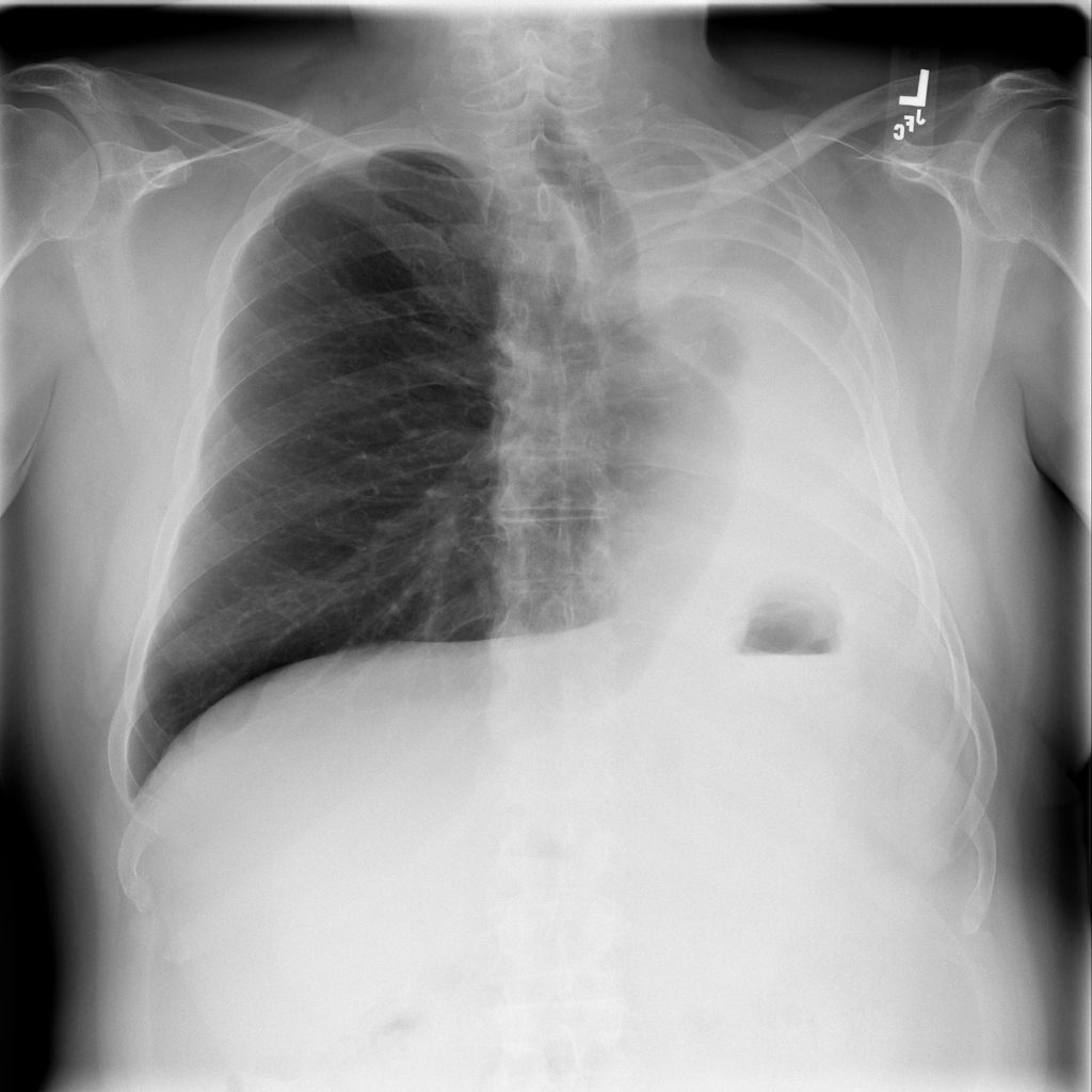 Pneumothorax means air is present outside the lung in the pleural space, which can allow part of the lung to collapse. It is an important imaging finding because the size and clinical impact can vary widely.